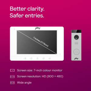 Godrej Security Solutions NeX Pro 7 inch SeeThru Video Door Phone ,WiFi Mobile Connectivity, 120 degree Camera with Angular Bracket, 2MP HD
