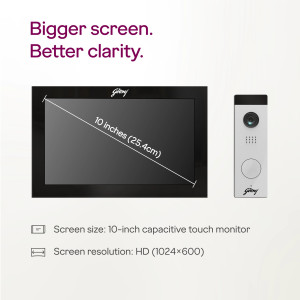 Godrej SeeThru NeX Lux 10 inch Video Door Phone, Full HD Touch Display, WiFi Mobile Connectivity, 2MP 1080P Camera, 2-Way Talk, IR Night